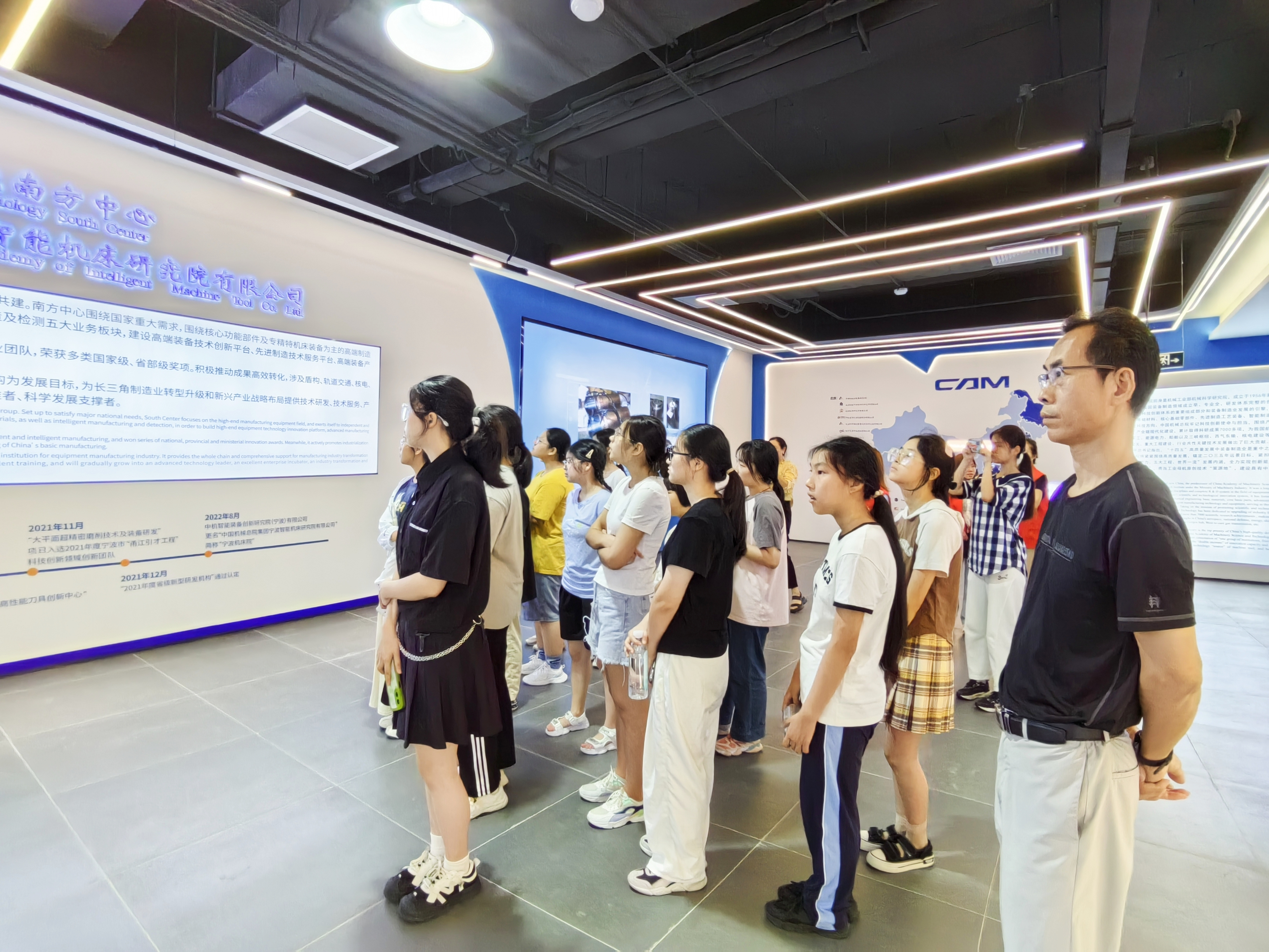 這次活動(dòng),通過“動(dòng)靜結(jié)合、交流互動(dòng)”等方式展開,在參觀公司展廳,讓學(xué)習(xí)了解寧波機(jī)床院的發(fā)展、建設(shè)歷程、成果成就,了解作為國資央企服務(wù)國家發(fā)展大局的使命擔(dān)當(dāng);在參觀實(shí)驗(yàn)室,多角度、全方位了解科研創(chuàng)新、新先技術(shù)發(fā)展等。在交流環(huán)節(jié),2位外國專家和1位博士分享了如何成長成才的經(jīng)驗(yàn),鼓勵(lì)學(xué)生提升自信、開闊眼界,努力學(xué)習(xí);分享后,學(xué)生與專家、博士進(jìn)行了互動(dòng)交流。