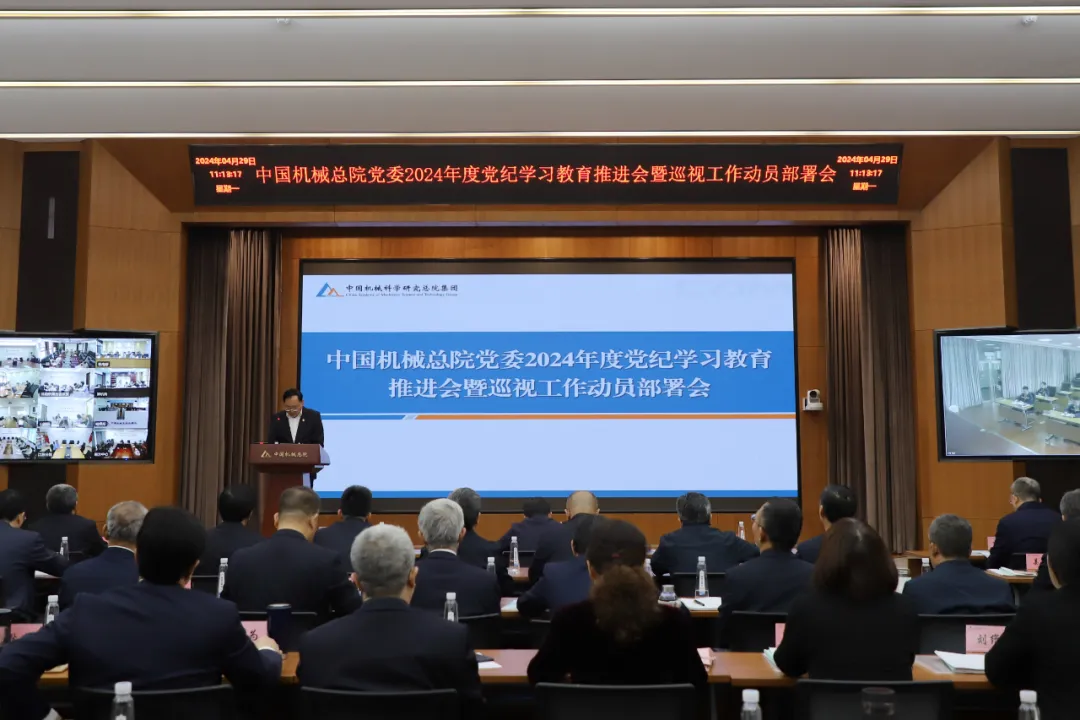 4月29日,中國機械總院黨委召開2024年度黨紀學習教育推進會暨巡視工作動員部署會,集團領導班子成員出席會議,會議由集團黨委副書記、總經理王西峰主持。